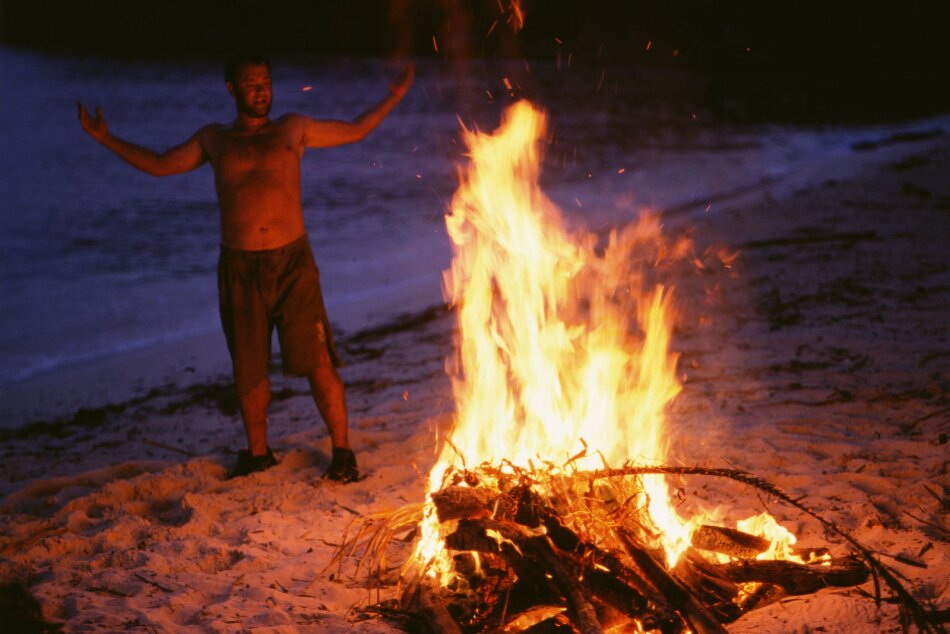 Diese Beziehung mit einem Volleyball, wie er das erste Mal Feuer macht...