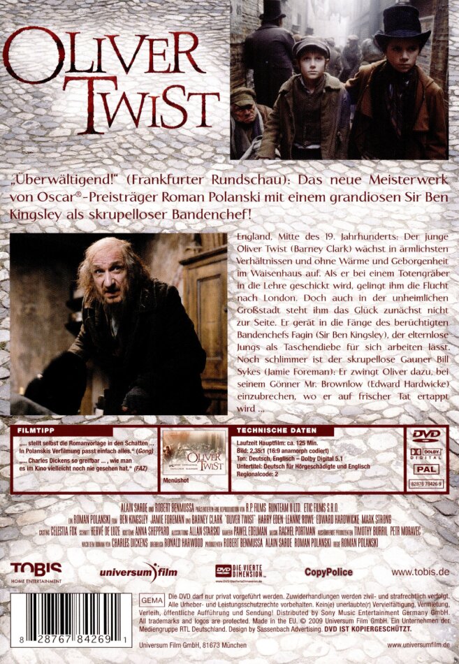 Schade, dass Oliver Twist kein grosses Publikum fand. Ich empfehle den Film uneingeschränkt.