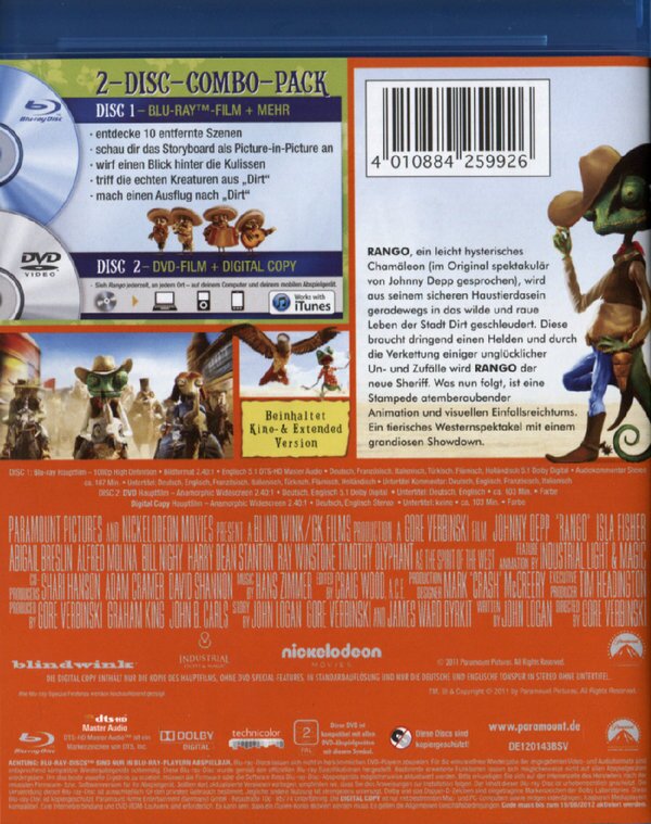 Absolut genialer Streifen der zu Unrecht dank FSK ab 6 Jahren als Kinderfilm abgestempelt wird und im Schatten der tatsächlichen Kinderfilme wie RIO oder Kung Fu Panda 2 untergegangen ist. Meisterwerk aus dem Hause ILM (Star Wars, Avatar) mit einem Johnny Depp Chamäleon in Höchstform und einer sehr guten und witzig umgesetzten Geschichte!
