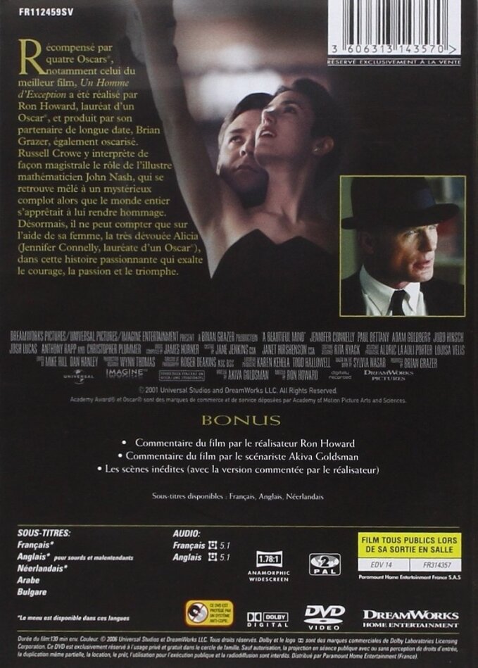 un film epoustouflant qui nous met la tête a l'envers. Russel crowe est excellent et m'a étonné dans ce role qu'il joue très bien après avoir magnifiquement jouer la brute épaisse dans Gladiator
