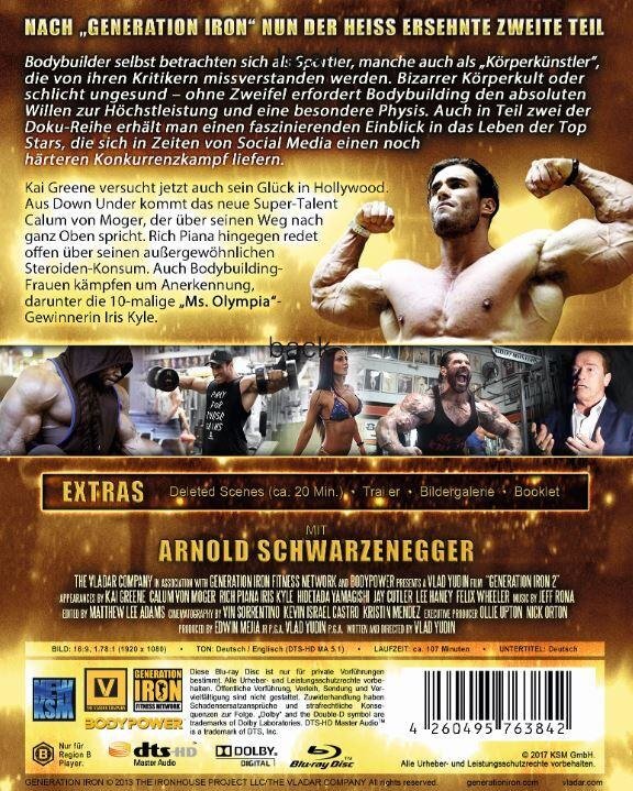 „Generation Iron“- Reihe erhält man einen faszinierenden Einblick in das Leben der Top Stars, die sich in Zeiten von Social Media einen noch härteren Konkurrenzkampf liefern. Kai Greene, das physische Gesamtkunstwerk, versucht jetzt auch sein Glück in Hollywood. Aus Down Under kommt das neue Super-Talent Calum von Moger, der über seinen Weg nach ganz Oben spricht. Rich Piana hingegen, der 1,2 Millionen Follower bei Instagram vorweisen kann, redet offen über seinen aussergewöhnlichen Steroiden-Konsum. Auch Bodybuilding-Frauen kämpfen um Anerkennung, darunter Iris Kyle, die 10-malige Ms Olympia-Gewinnerin, einer der weiblichen Stars des Films.
