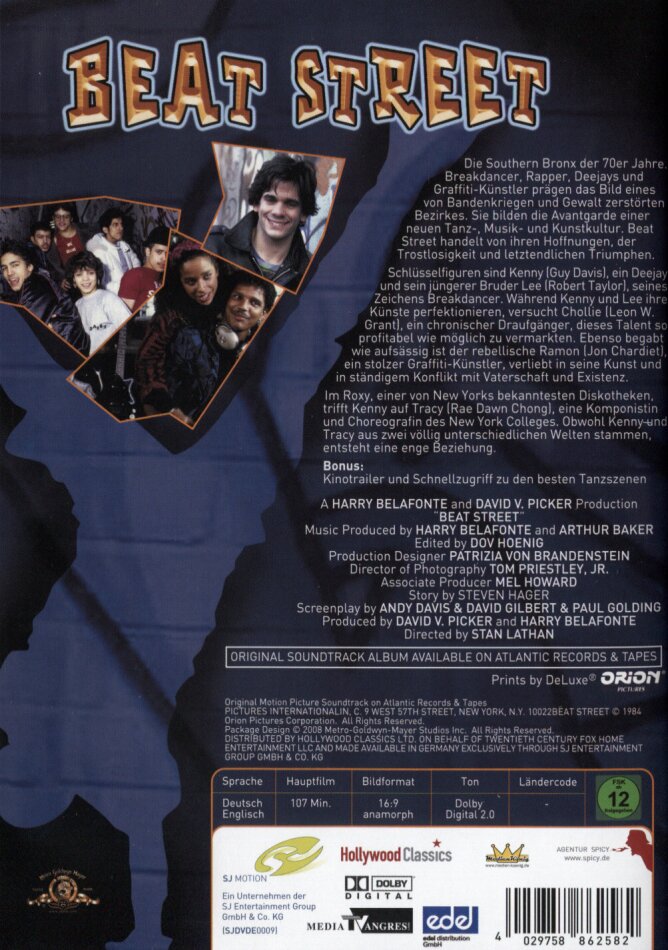 Natürlich sind die 8oer schon lange vorbei und "Beat Street" feiert nun auch schon seinen zwanzigsten Geburtstag. Doch auch wenn die Keyboardsounds, Breaks und Klamotten etwas veraltet und manchmal leicht peinlich wirken, zeigt "Beat Street" sehr authentisch, woher der Rap kommt und aus welchem Grund er entstanden ist. Dies ist kein Musical und auch kein Teeniefilm, auch wenn die spärliche Handlung das scheinbar vermittelt. Hier gibt es keine Spur von Gold und Glitter. Das Umfeld in der Bronx ist schäbig und die Jungs machen in diesen miesen Zeiten das Beste draus; sprayen, rappen, breaken und mixen was das Zeug hält. Für jeden sogenannten "HipHopper" von heute ein Muss, denn die Plattenindustrie hat in diesen Zeiten nichts mehr mit den Roots der 80er gemeinsam, höchstens noch einige Namen, die aber bald verschwinden werden. Dazu gehören Afrika Bambaataa, Doug E Fresh, Melle Mel oder die Rocksteady Crew.