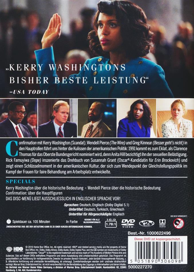 Confirmation mit Kerry Washington (Scandal), Wendell Pierce (The Wire) und Greg Kinnear (Besser geht’s nicht) in den Hauptrollen führt uns hinter die Kulissen der amerikanischen Politik: 1991 kommt es zum Eklat, als Clarence Thomas für das Oberste Bundesgericht nominiert wird, denn Anita Hill bezichtigt ihn der sexuellen Belästigung. Rick Famuyiwa (Dope) inszenierte das Drehbuch von Susannah Grant (Oscar-Kandidatin für Erin Brockovich) und zeigt einen Schlüsselmoment in der amerikanischen Kultur, der sich zum Wendepunkt der Gleichstellungspolitik im Kampf der Frauen für faire Behandlung am Arbeitsplatz und anderswo entwickelte.