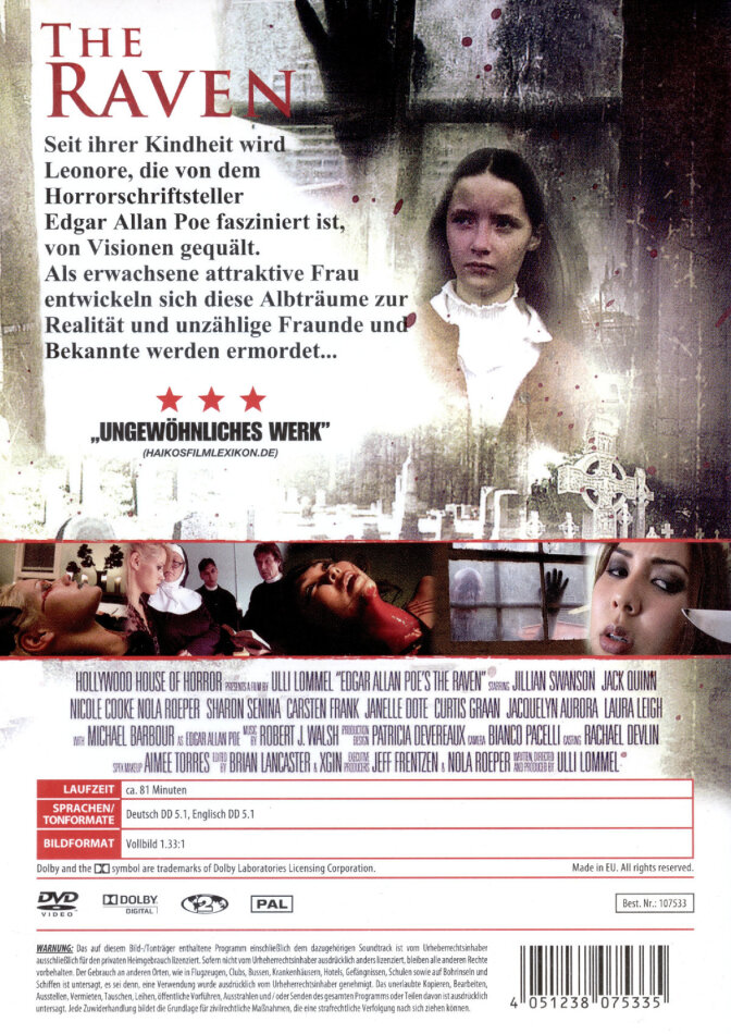 Ulli Lommel vergreift sich an E.A. Poe? Der grösste Versager Deutschlands (verglichen mit Lommel ist Uwe Boll ein grandioses Genie....) versucht den Gross-Meister des Horrors (neben Lovecraft) zu interpretieren? Na dann gute Nacht!!!! Einziger Lichtblick: Er hat die Hauptrolle nicht mit Daniel Kübelböck besetzt ;-)