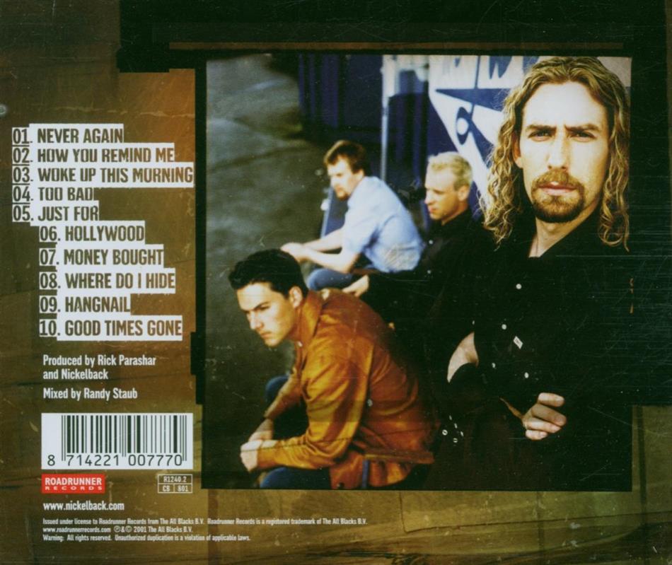 questo è un gran disco! how you remind me si merita ampiamente il successo che ha e il resto del disco non è da meno: never again é il miglior brano dell'album: grandi riff e grande prova vocale di chad kroeger, ottimo anche il batterista ryan vikedal. woke up this morning non è male ma too bad spacca sul serio!!! just for ricorda un po' troppo gli staind e hollywood i pearl jam ma nel complesso non sono male. monet bought e where do i hide sono carine ma hangnail fa davvero schifo. l'ultima canzone e molto bella con una grande slide guitar in sottofondo... ottimo album, finalmente una band con i coglioni che passa anche per mtv!