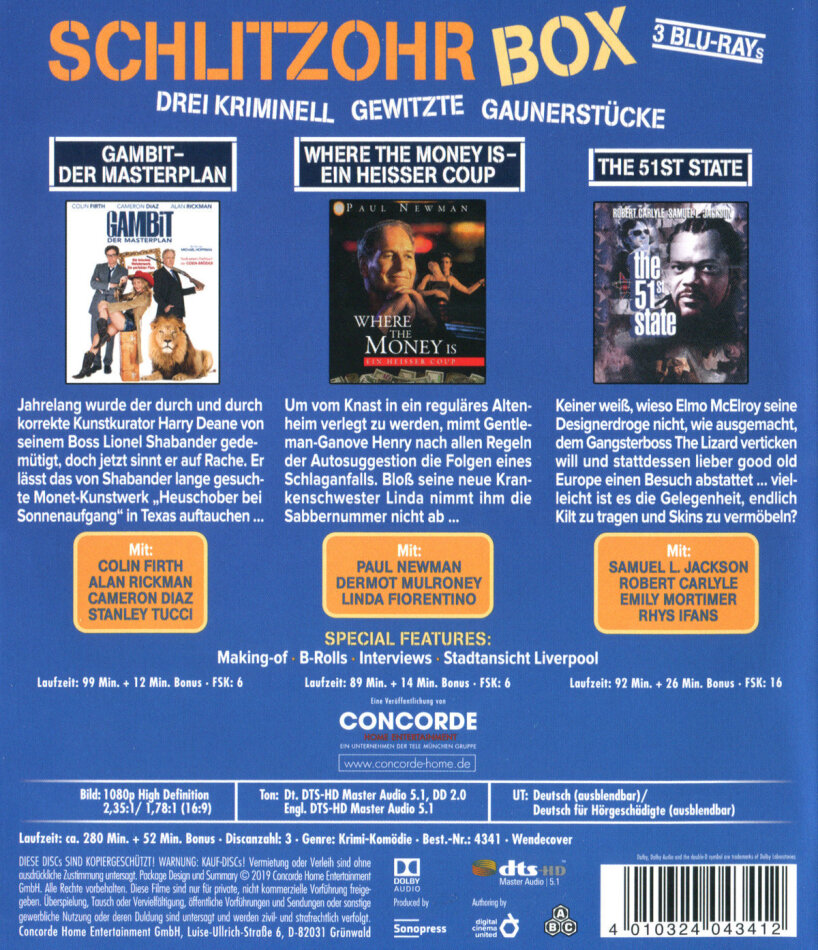 | Original title | Gambit/Where the money is/The 51st State |