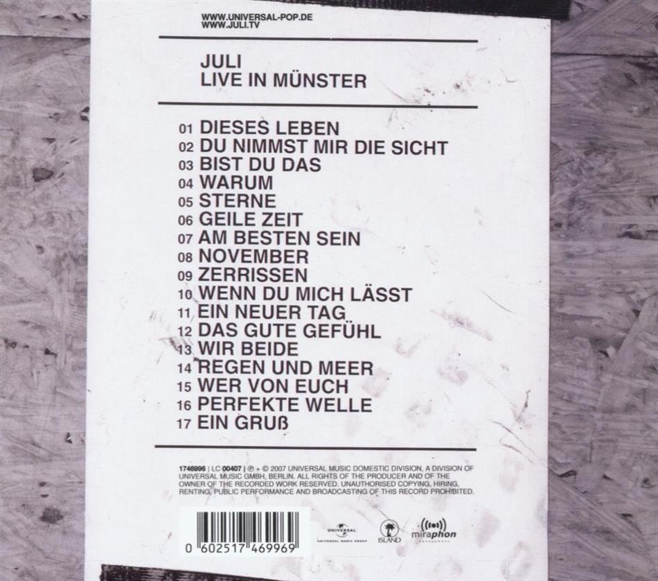 700 000mal hat sich das erste juli-album allein in deutschland verkauft, nicht zuletzt dank der grandiosen radiosingle "perfekte welle", die von flensburg bis fribourg auf hochtouren gelaufen ist. und natürlich der unbeabsichtigte popularitätsschub nach dem tsunami, als "perfekte welle" vorübergehend aus dem radio verbannt wurde. die frage muss erlaubt sein, ob der erfolg des erstlings noch getoppt werden kann? ja, er kann, denn juli machen da weiter, wo sie mit "es ist juli" aufgehört haben. das musikalische spektrum wurde sachte erweitert, aber im grunde genommen ist es immer noch jener poppig-rockige, an guten alten ndw-zeiten angelehnte sound, den die fans bereits ins herz geschlossen haben. ab und zu rocken eva briegel und ihre jungs ganz schön (fast wie silbermond), aber im grunde genommen spielen die giessener radiokompatible popsongs, verstärkt mit gitarren riffs. wirklich originell ist das nicht, aber es klingt sehr gut und kann süchtig machen. der zweitling ist derart erfolgreich, dass für februar gleich die recht grosse eulachhalle in winterthur gebucht worden ist.