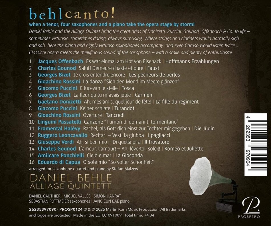 Daniel Behle; Alliage Quintet & Amilcare Ponchielli (Composer)