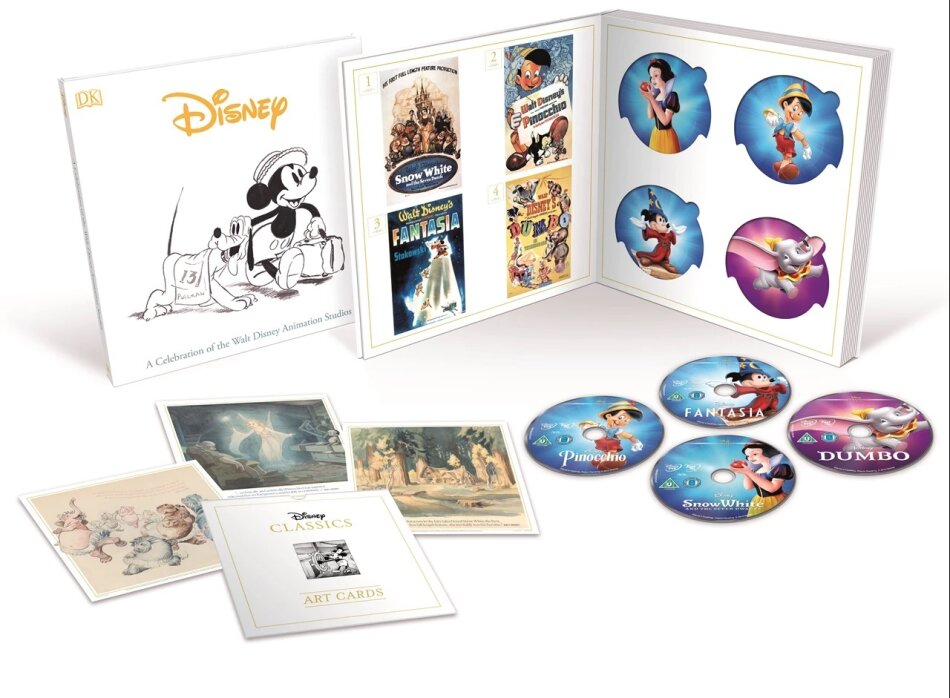 All Disney Classic movies on Blu-ray disc for the first time in the UK. New to Blu-ray movies exclusively featured in the collection are Saludos Amigos, The Three Caballeros, Make Mine Music, Melody Time, The Black Cauldron