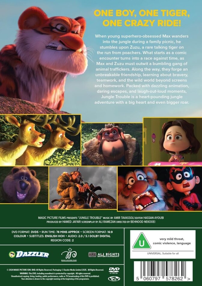 What starts as a comic encounter turns into a race against time, as Max and Zuzu must outwit a bumbling gang of animal traffickers. Along the way, they forge an unbreakable friendship, learning about bravery, teamwork, and the wild world beyond screens and homework. Packed with dazzling animation, daring escapes, and laugh-out-loud moments, Jungle Trouble is a heart-pounding jungle adventure with a big heart and even bigger roar.