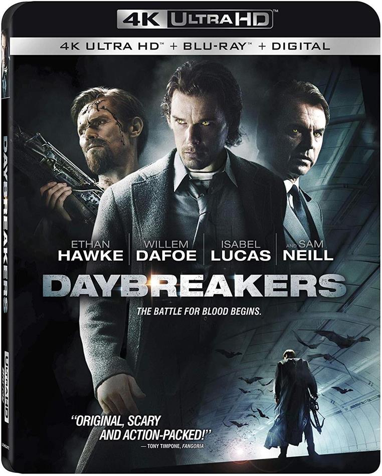 Nun zu Daybreakers: ACHTUNG wer hier einen reinrassigen Horrorfilm erwartet wird mehr als enttäuscht. Zwar setzt man hier (im Gegensatz zum Erstling der Brüder ;) auf Hochglanz, allerdings sehe ich den Film eher als (sehr) gesellschaftskritisches Drama. Auch das Cover täuscht extrem. Die Vampire dienen hier eher als Aufhänger. Zum Glück wird aber auf die im moment grasierende Romantisierung ("Twilight"!) des Genres verzichtet! Er bietet auch ein paar handfeste Actionszenen und auch zahlreiche Special Effects, ist jedoch weit vom "Popcorn-Kino" entfernt. Hier wird man noch gezwungen das Hirn ein zu schalten ;) Unterstützt durch Top-Schauspieler wie dem (wie immer) souveränen Willem Dafoe, ist dieser Film kein "Snack" für zwischendurch. Sehr wahrscheinlich hat er mir desshalb so gut gefallen... -