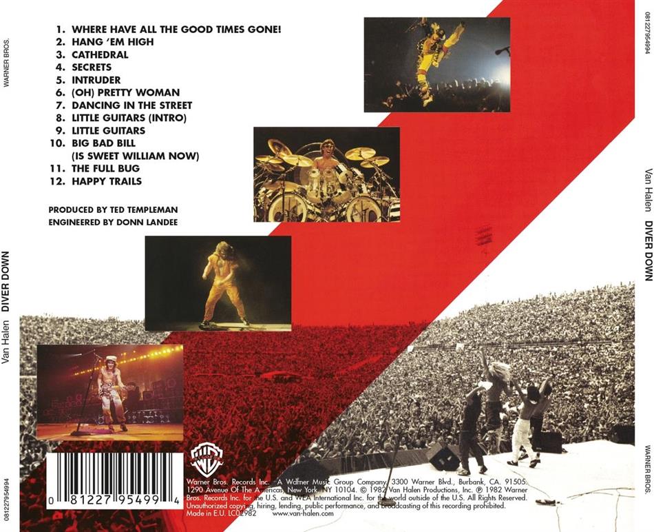 Mit "Diver Down" folgte 1982 das sicherlich komischtste Album von VH. Kaum Eigenkompositionen, dafür viele Covers und Singalongs. Dieses Album ist v.a. auf Initiative von David Lee Roth und Noel Monk (dem Manager von VH) entstanden, die der Meinung waren, wenn man einen Hit covert, man automatisch wieder einen Hit landet. Womit sie eigentlich auch recht hatten, denn die Scheibe verkaufte sich ohne grossen Eigenaufwand zig millionenmal. Trotz vieler Fremdkompositionen ist das Album eigentlich gut gelungen - "Pretty Woman", "Dancing In The Streets", "Big Bad Bill" (mit Eddies Vater an der Klarinette!) und "Happy Trails" klingen so, als wären es VH Originals. Die tatsächlichen Eigenkompositionen haben es dann aber in sich: "Cathedral" (wunderschönes Gitarrencrescendo), "Little Guitars" und "The Full Bug" sollte man gehört haben.