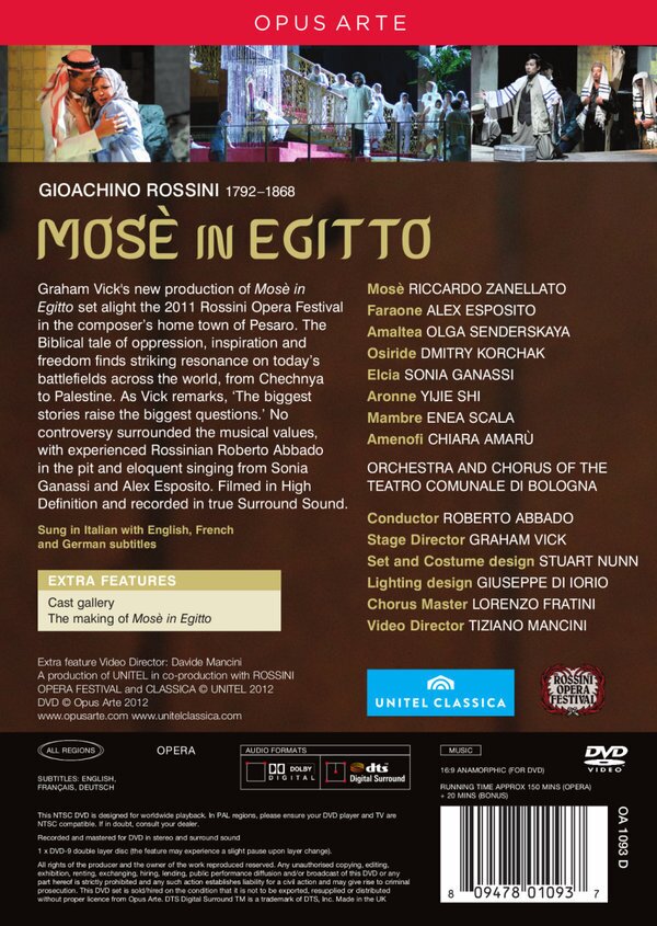 | Artists | Orchestra of the Teatro Comunale di Bologna, Claudio Abbado, Alex Esposito, Olga Senderskaya, Dmitry Korchak, Sonia Ganassi, Enea Scala, Riccardo Zanellato, Yijie Shi, Chiara Amarù |