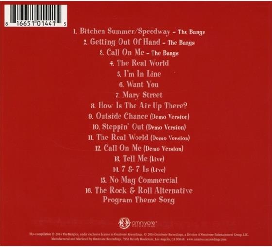 Sont également inclus trois bizarreries que les Bangs/Bangles ont enregistrées en 1982-83 (avec la bassiste originale Annette Zilinskas) qui se sont retrouvées sur des albums de compilation de divers artistes - l’instrumental surf « Bitchen Summer/Speedway ».