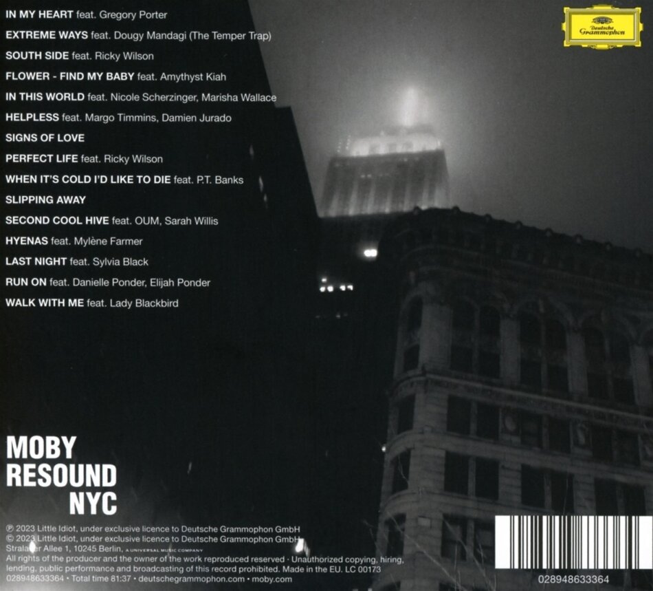 Nach seinem gefeierten Album "Reprise" (Mai 2021), auf dem unter anderem Kris Kristofferson, Mark Lanegan, Jim James und Skylar Grey zu hören waren, hat Moby nun 15 seiner legendärsten New Yorker Tracks aus den Jahren 1994 bis 2010 neu interpretiert und instrumentiert. Mobys 20. Studioalbum ist nicht nur eine Reflexion über die vielleicht entscheidendste Zeit in seinem Leben, sondern auch über sein einstiges Zuhause, New York City. Dort wurde er geboren, dort nahm seine Karriere ihren Anfang – im Punkrock und als DJ in Underground-Clubs. »Bevor ich Punkrock für mich entdeckte, war ich im Classic Rock zu Hause«, sagt Moby. »Mein erstes Konzert war 1978 Yes im Madison Square Garden. Es war also mehr als verlockend, sich noch einmal mit meinen Liedern auseinanderzusetzen und zu gucken, ob sie einer traditionelleren, nicht-elektronischen, orchestralen Bearbeitung standhalten.« Begleitet wird Moby auf diesem Album von grossartigen Künstlern wie Nicole Scherzinger, Gregory Porter, Ricky Wilson und Amythyst Kiah. Im Artwork dieser Digisleeve CD finden sich passend zur Musik eine Bandbreite persönlicher Fotos aus Moby`s Zeit in New York.