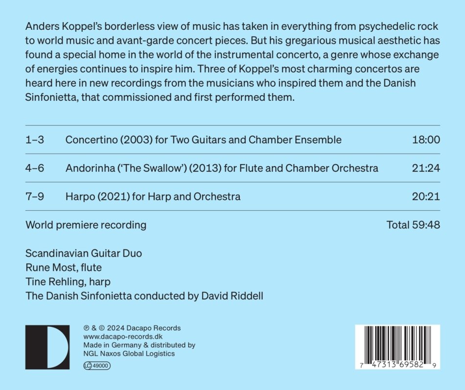 | Artists | David Riddell (Conductor), The Danish Sinfonietta (Orchestra), Rune Most, Tine Rehling, Scandinavian Guitar Duo |