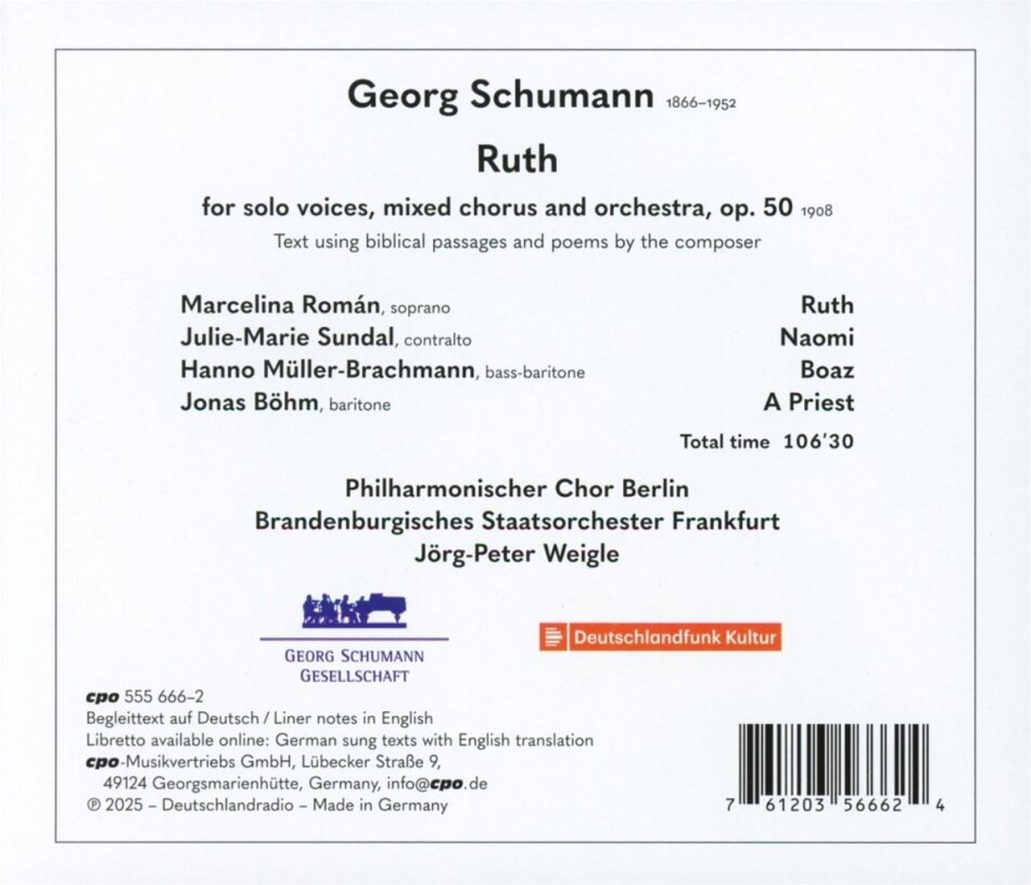 Artists | Marcelina Román (Soprano), Julie-Marie Sundal (Song (singing / voice)), Hanno Müller-Brachmann (Bass-baritone), Jonas Böhm (Baritone), Jörg-Peter Weigle (Conductor), Brandenburgisches Staatsorchester Frankfurt (Orchestra) |