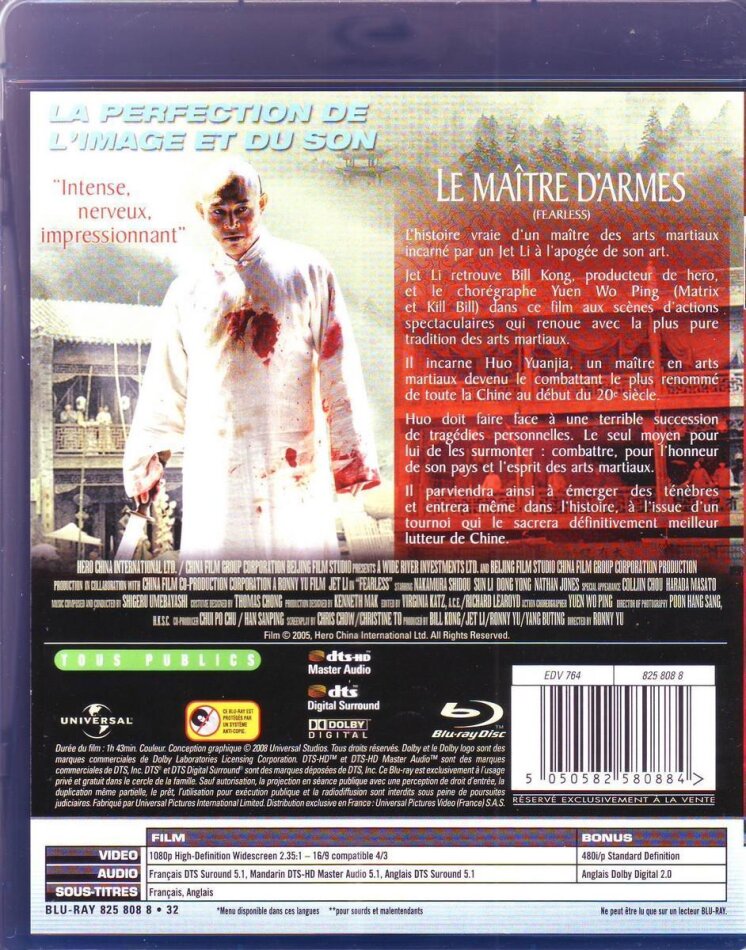 ausgezeichnet, habe ihn soeben gesehen. zum abschluss einer der besten filme mit jet li überhaupt. und wenn eine gewisse täglich herauskommende gratiszeitung dem film nur 2 von 5 sternen gibt und ihn zum vergleich schlechter dastehen lässt als hero und cthd (was zum teufel hat fearless mit diesen zwei filmen gemeinsam???) kann ich da echt nur an der kompetenz des autors zweifeln. however...fearless gehört (mindestens) in die gleiche reihe wie once upon a time in china 1 + 2, claws of steel und tai chi.