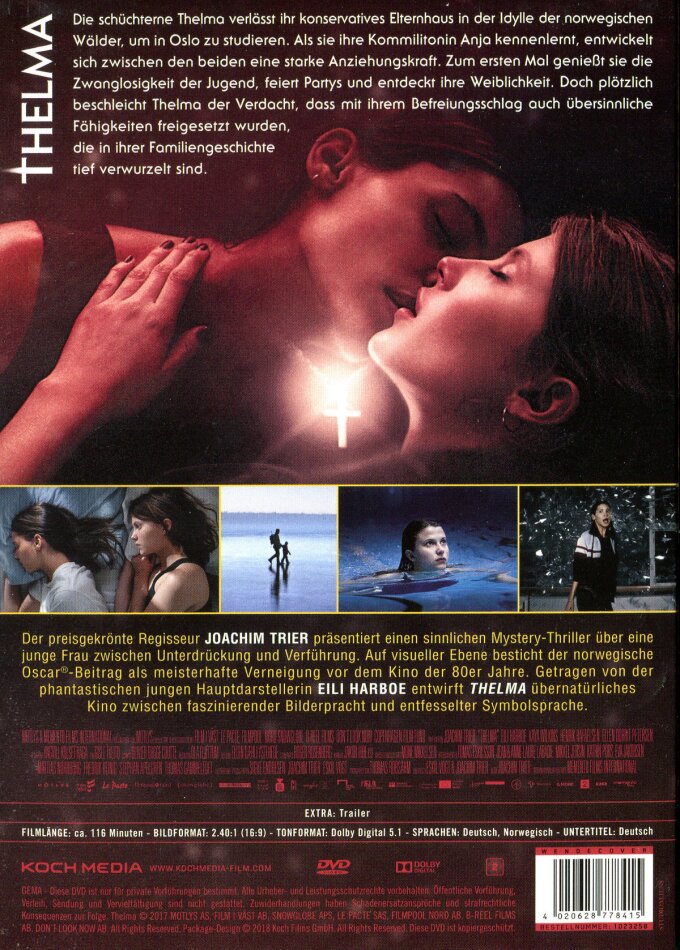 Was die Tragik und den metaphysischen Plot betrifft weht ein Hauch von 'Ringu' durch den mysteriösen Film. Das mag weit hergeholt wirken. Aber zieht man die drastische Zuspitzung und krassen Schuldzuweisungen sowie die plakative Beschwörung des 'Bösen' per se ab, sind wir mitten in einem Schicksal, das sich in der Fassungslosigkeit erschöpft und einen Kompromiss mit dem Unwägbaren zu schliessen gezwungen ist. Mehr, als das vererbtes Rätsel kann an sich nicht diagnostiziert werden. Wir und Thelma (altgriechisch 'Wille') bekommen es da mit Verwerfungen zu tun, mit einer Para-Anomalie für die es letztlich keine rationale Erklärung gibt, die ambivalent ausgelegt wird, erstlich erschreckend hingegen letztlich an ein Wunder grenzend, das gemeinhin als eine 'Gabe des Heiligen Geistes' gilt. Wir erfahren Fluch und Segen an und mit diesem zarten und doch tapferen Geschöpf und werden zum Zeugen einer reizvollen offen endigen Interpretation der Wirklichkeit in der das Unbewusste Gestalt annimmt.