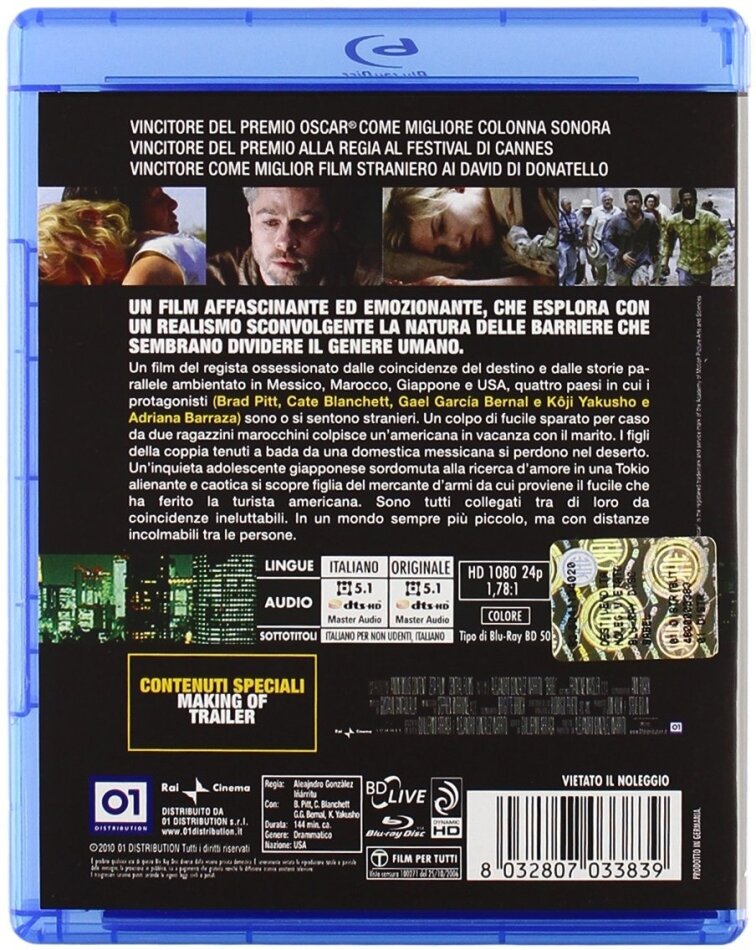 nicht, dass der film richtig schlecht wäre - bloss, die filme inarritus verlieren von mal zu mal an qualität. Amores Perros hat mich weggehauen, 21 Grams war dasselbe in grün, leider etwas überfrachtet und bei Babel und der psudomässigen weltumspannenden Verknüfung der Handlungsstränge funktioniert's nur noch scheinbar. Die atmosphärische Dichte geht völlig verloren. Schaut euch die älteren Filme an, die sind besser!